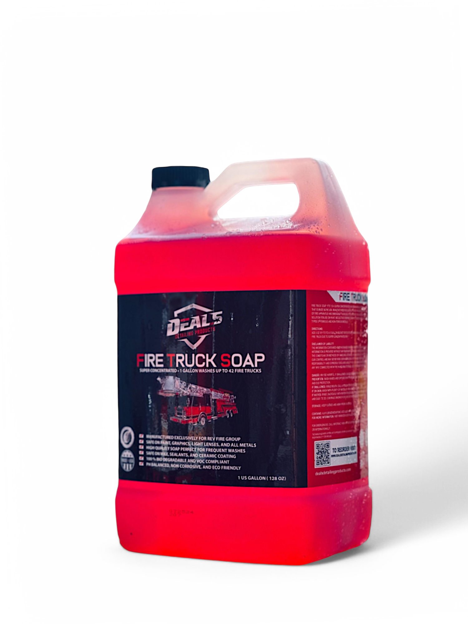 Deals Fire Truck Soap (FTS) is an ultra-concentrated and environmentally friendly cleaning formula specifically designed for fire trucks, rescue vehicles, and emergency fleets. This professional-grade wash solution is manufactured for REV Fire Group and approved for use on all types of fire apparatus and emergency vehicles.